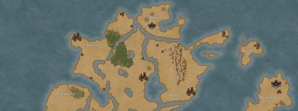 Het Tuberbistúr gewest kenmerkt zich door de drie meren van verschillende grootte die in het landschap te vinden zijn, en de bergketen in het landschap. Het gewest kenmerkt zich in de dagelijkse gang van zaken vooral door de actieve bevolking op het gebied van klimvakanties, gecombineerd met survivaltochten in het water nabij de keten. Daarnaast zijn op dit gewest ook veel dorpen en steden te vinden met een grote hoeveelheid theatergroepen. Deze groepen treden vaak op in de theaters op de andere gewesten, evenals in hun steden zelf. Een van hun theaters is het wonderschone BerStúr theater. Volgens de oorspronkelijke plannen zou de spraakmakende voorstelling Goré de Tys hier in premiere gaan. Helaas is het theater net voor de grote dag voor onbepaalde tijd gesloten vanwege instortingsgevaar. Totdat dit gevaar verholpen is spelen hier helaas geen voorstellingen meer. De meest populaire toeristische attractie zijn de oude silfurnáma zilvermijnen, waarin vanaf de ontdekking onder koning Arún V grondstoffen werden gedolven en vervolgens verwerkt tot vloeibaar zilver. Dit werd verkocht aan handelslieden die dit verwerkten tot voorwerpen waarin zij handelden. Een van de overige zaken waarmee dit gewest zich kenmerkt én onderscheid van de overige, is roomijs en suikerwafels, geserveerd in een schaal van porselein. Dit dessert wordt sinds koning Aron I traditiegetrouw gegeten op de verjaardag van de vorst, om zo de hele eilandengroep mee te laten delen in de festiviteiten.